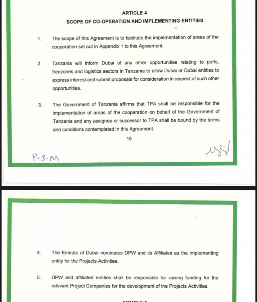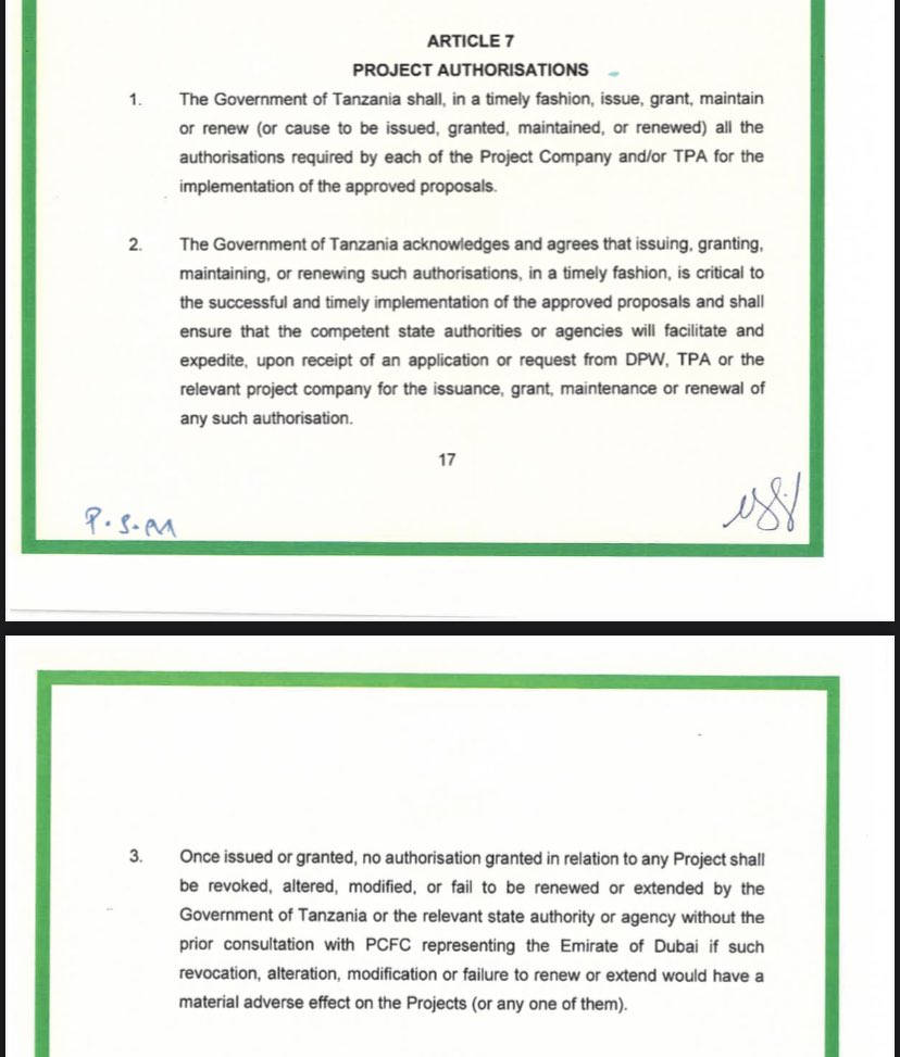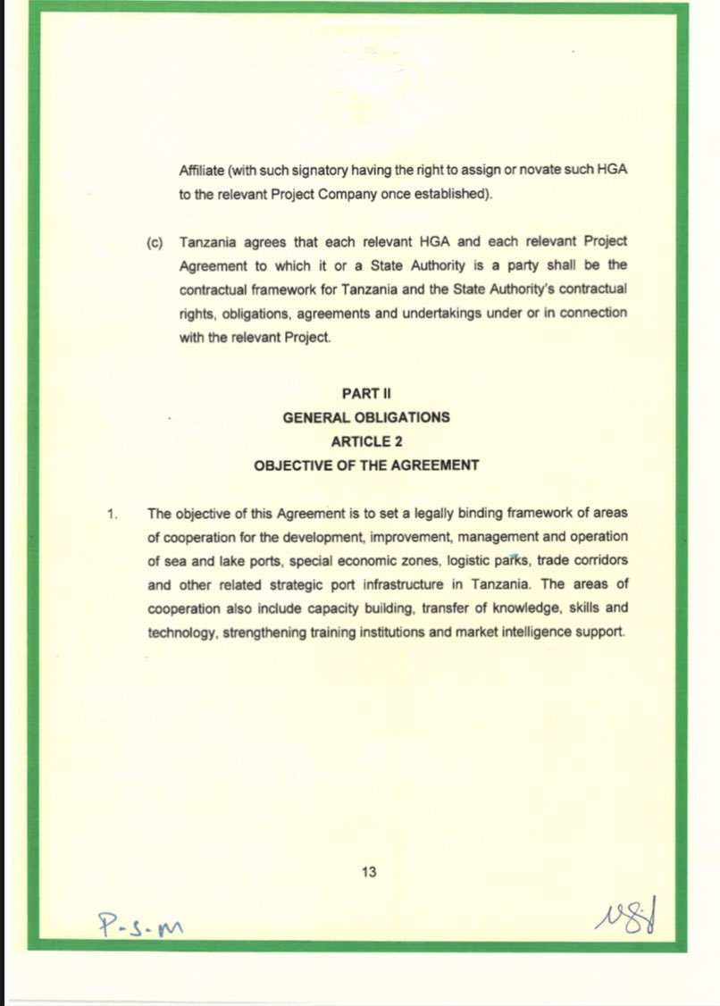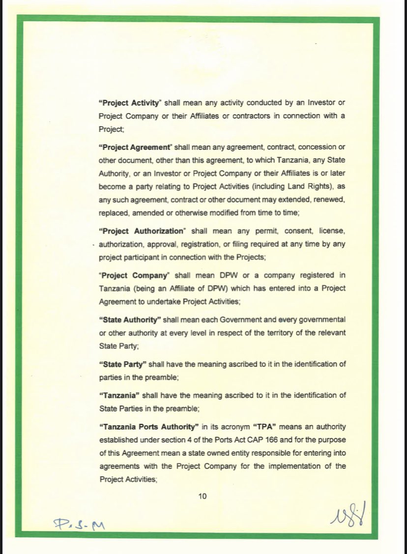 Nchi Wanachama wanakubaliana kuwa DPW itakuwa na haki ya pekee ya kukuza, kusimamia na/au kuendesha Miradi kama ilivyoelezwa katika Kiambatisho 1 Awamu ya 1, moja kwa moja au kupitia Kampuni zake tanzu chini ya…
