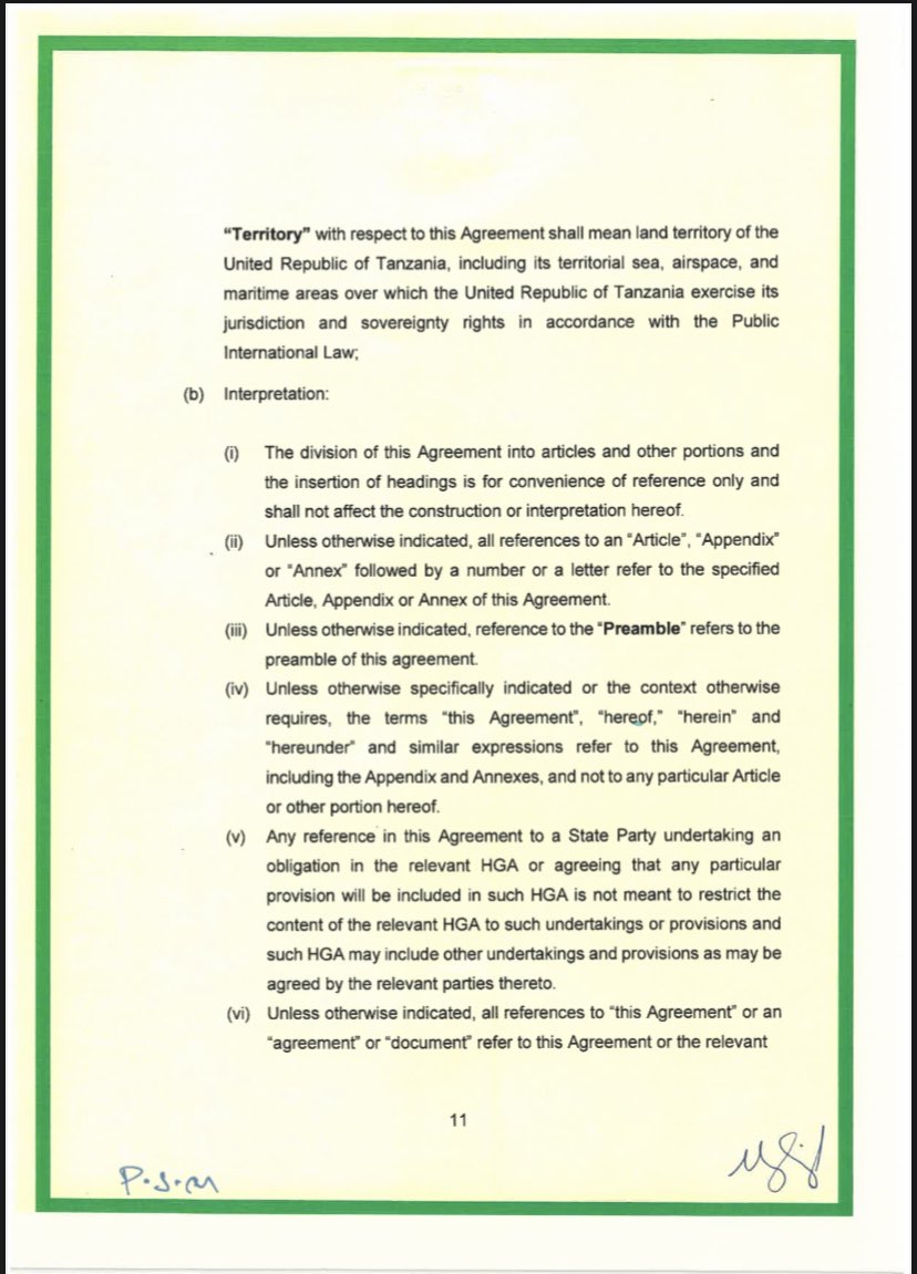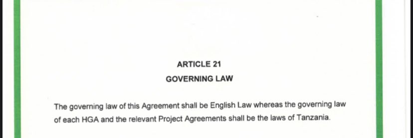 Sheria inayoongoza Mkataba huu itakuwa Sheria ya Kiingereza, wakati sheria inayoongoza kila HGA na Mikataba ya Mradi husika itakuwa sheria za Tanzania.⬇️