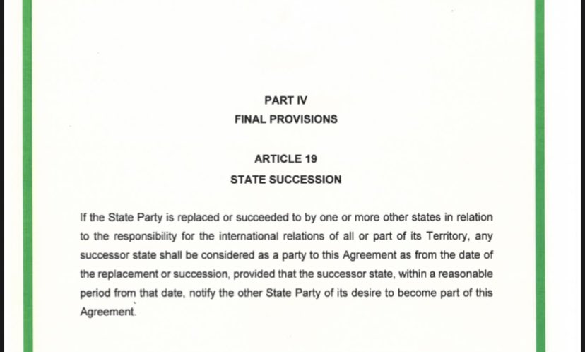 Ikiwa Nchi Mwanachama itachukuliwa au kuchukuliwa nafasi na nchi moja au zaidi kuhusiana na jukumu la uhusiano wa kimataifa wa eneo lake au sehemu ya eneo lake, nchi yoyote inayochukua nafasi hiyo…