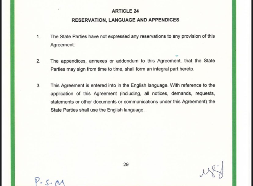 1. Pande zote za Serikali hazijatoa akiba yoyote kwa kifungu chochote cha Mkataba huu.