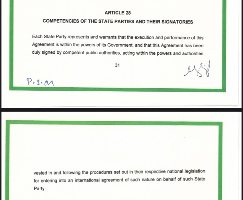 Kila Nchi Mwanachama inawakilisha na kuhakikisha kwamba utekelezaji na utendaji wa Mkataba huu unapatikana ndani ya mamlaka ya Serikali yake, na kwamba Mkataba huu umesainiwa kwa mamlaka ya umma yenye…