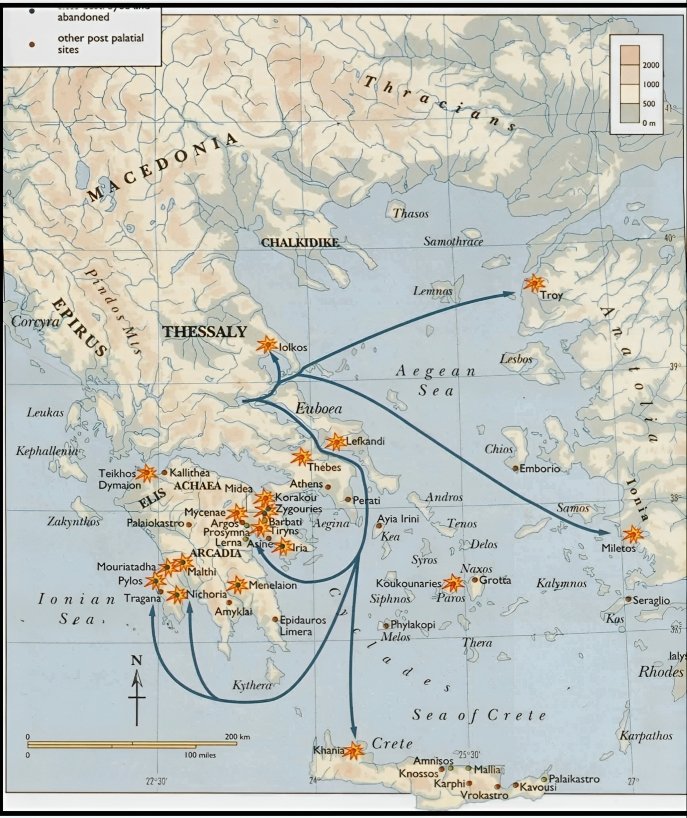 4/ We should emphasize that after the general destruction of the Mycenaean palaces around 1210-1190 BC, there followed a period of intense instability (despite some isolated clues of periodic stability and recovery), π
