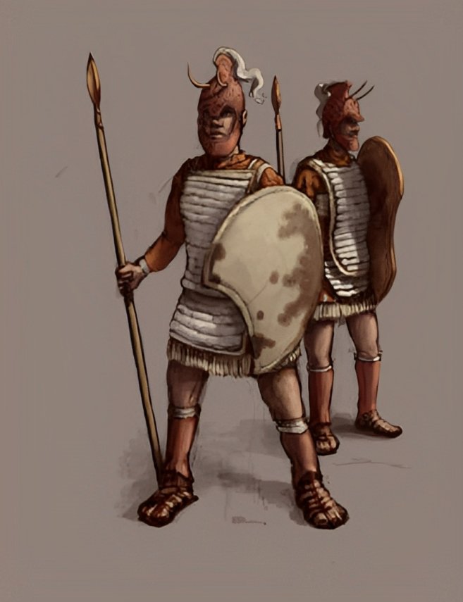 π It appears that the lower social classes used spears in battle, while the members of the elite carried highly elaborate - recognizable swords.