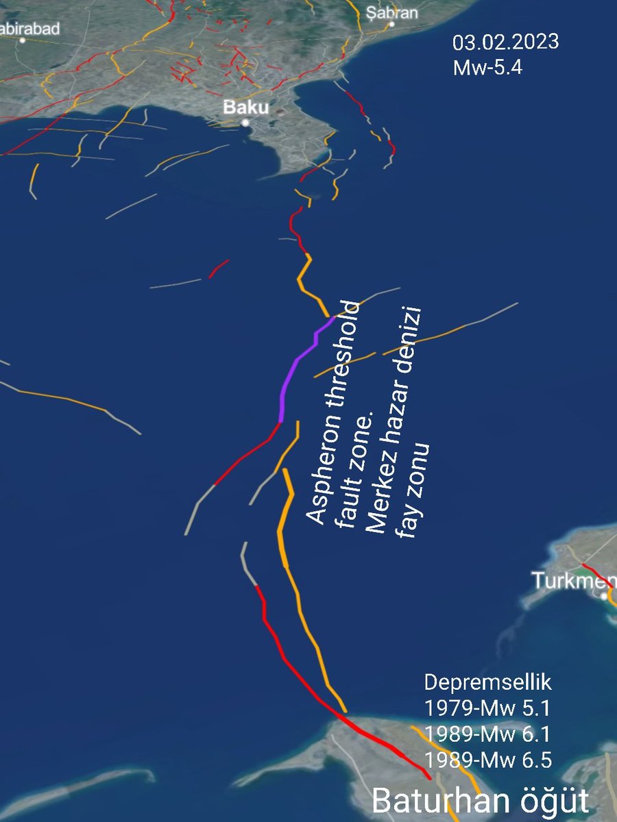 Merkez hazar denizi fay zonu Türkmenistandan başlayarak hazar denizini ikiye bölüp baküye kadar uzanır.