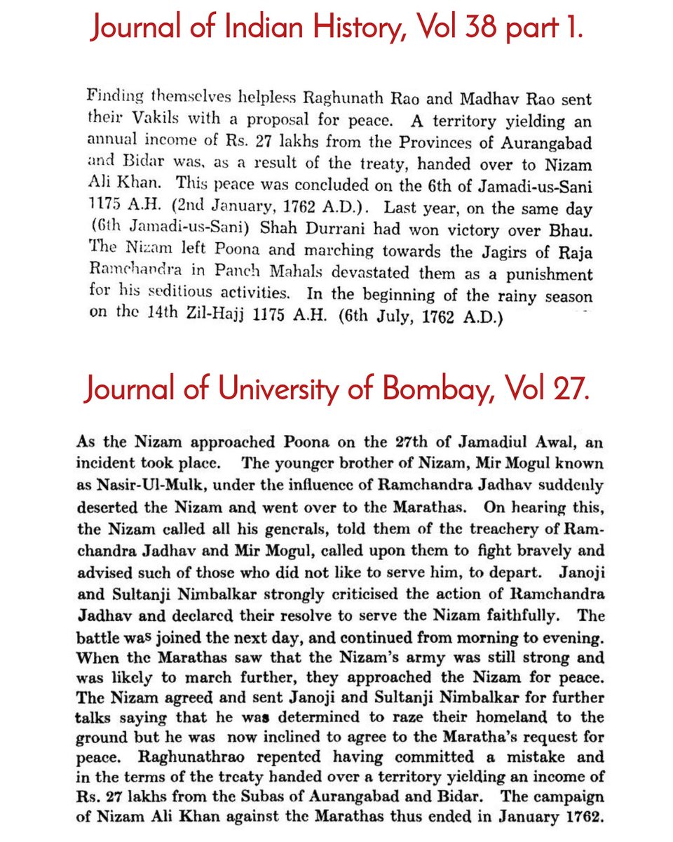 Mughals led by Nizam Salabat Jung of Hyderabad too defeated Marathas in the same period (1761 AD-1762 AD) — Thread 🧵.