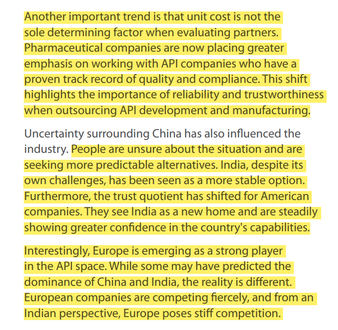 5⃣ Key trends - Quality and compliance is becoming more important than unit cost, American companies looking for more predictable alternative and India, seen as a more stable option, Drug development by biotechs driving 2/3rd of R&D pipelines