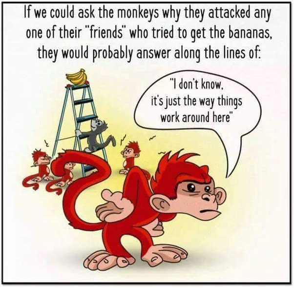 Humans are very similar, for example in a community they would likely hear about the story, warn others and everyone will stop climbing up the ladder. Remember & apply this to your own life. Be conscious of your day to day decisions. Understand that you always have a choice.