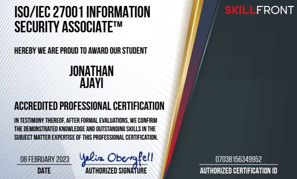 @IBM @ItexperienceI @Tech_Efiko @Generalsilas @ETHNOSLTD @VTFoundation I took advantage of a discount from @SkillFrontCom to get a certification as an ISO/IEC 27001 INFORMATION SECURITY ASSOCIATE as well as earning the CERTIFIED ASSOCIATE IN SCRUM FUNDAMENTALS (CASF).