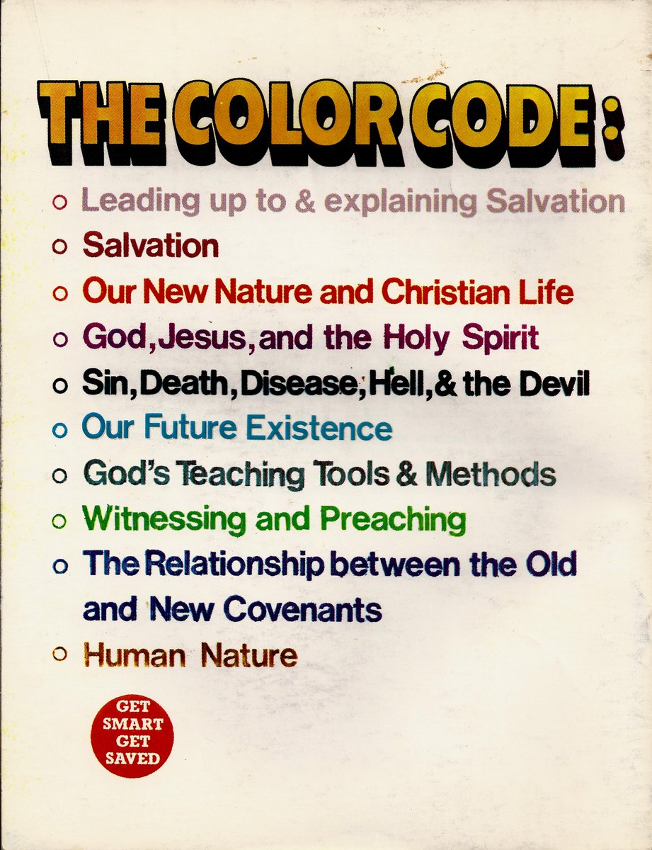 "Traill studied the Gospel of John devotedly.. The Color Code was his method of how to look at bible verses.The idea of color-coding the bible came from an early member but Traill is credited with the definitions&system.