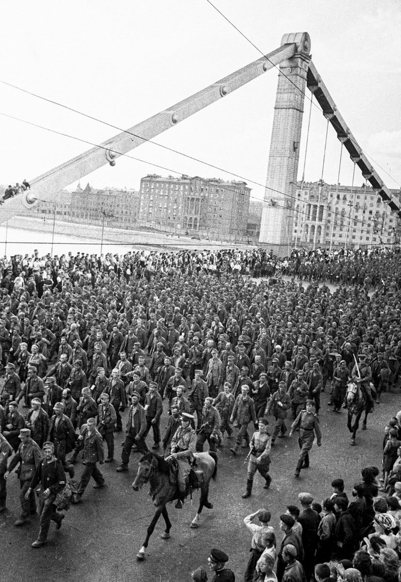 Os prisioneiros alemães foram devidamente alimentados. Não tiveram, entretanto, permissão para se banharem. O governo soviético queria que seu povo visse os autoproclamados guerreiros da raça superior marchando derrotados, maltrapilhos e imundos. 8/15