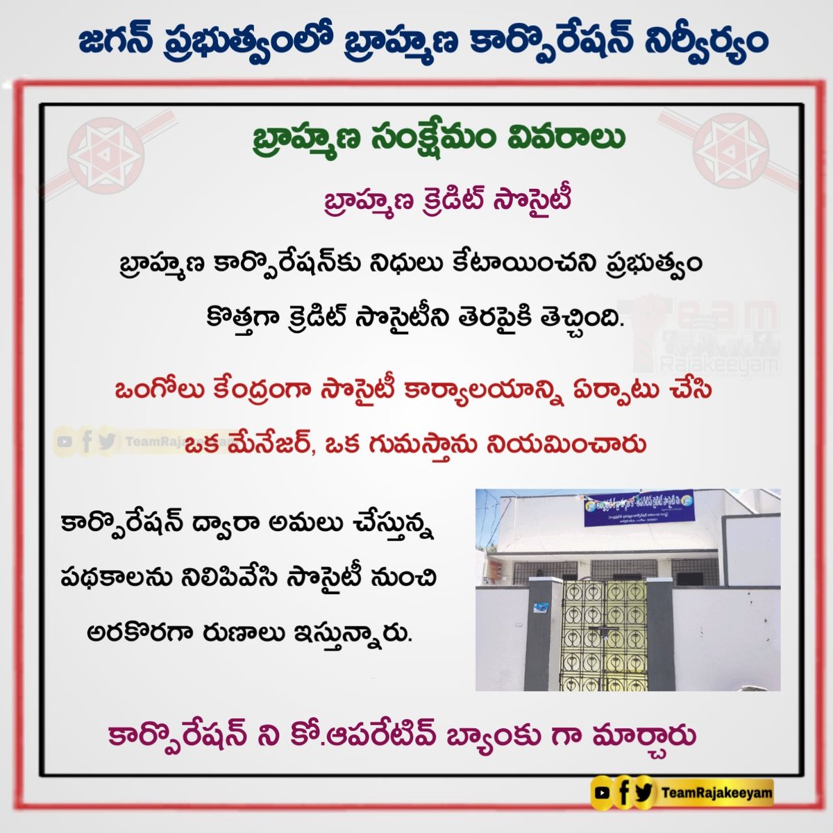 6. బ్రాహ్మణ కార్పొరేషన్ ని పక్కకి పెట్టి, క్రెడిట్ సొసైటీ ని తీసుకొచ్చారు