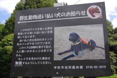 Between 1950-2007, only hunting dogs and police dogs were allowed unleashed, but now monkey dogs are also allowed to roam the borderlands between farms and mountains. Where they are deployed large signs are put up to make people aware of their presence.