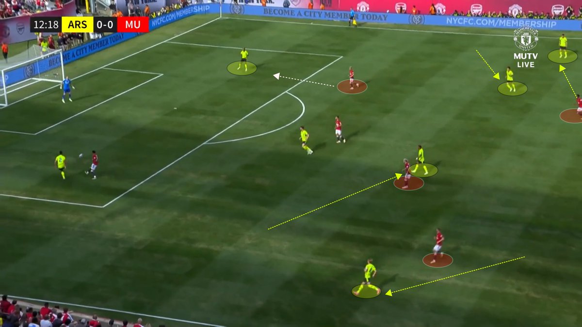 The funny thing is that in the last situations Arsenal pressed worked well and forced United to quickly go long, but they still conceded beacuse Gabriel miskicked the ball.