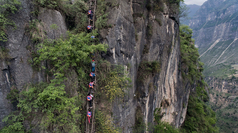 The "roads" are so treacherous, schoolchildren had to climb for 2 hours up a cliff between their boarding school and homes.