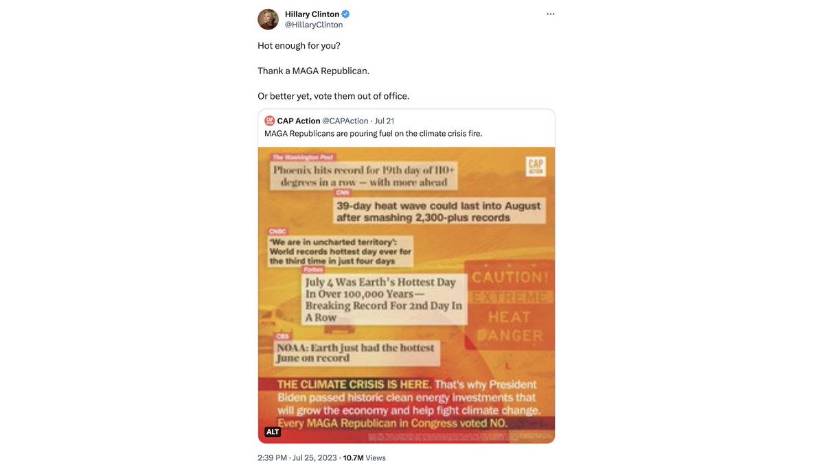 Many people rightly took Hillary blaming political opponents for hot weather as beyond the pale. And it was. At the same time, she is just regurgitating climate falsehoods that have become commonplace among our leaders.