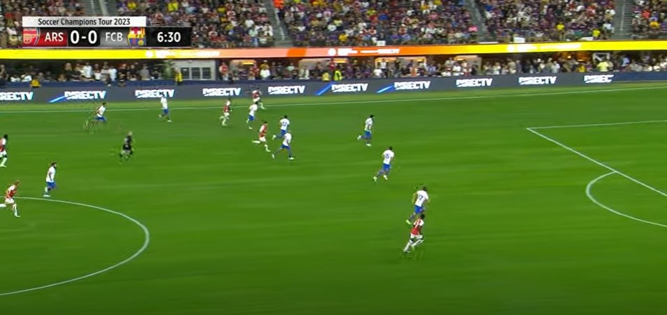 So when Arsenal played against Manchester United a few days before the Barcelona game, they weren't utilizing the long aerial balls effectively and from that winning the second balls. Against Barcelona they executed this perfectly as there wasn't much build up space in the center