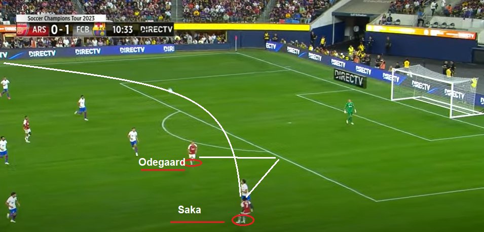 Arsenal's aspirations rely on distributing the goalscoring responsibilities among multiple players. At Barcelona, this has been a challenge so far. On occasions, Bukayo Saka showcased his versatility by dribbling down the line with his right foot, adding a different dimension.