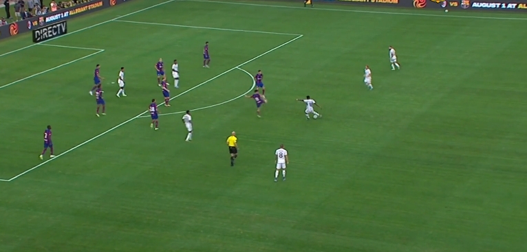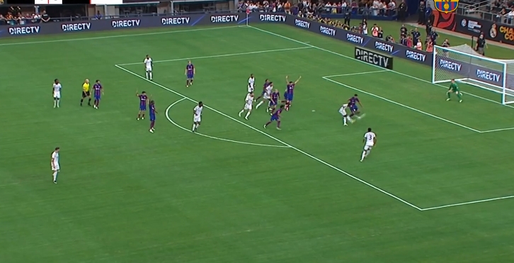 Y empezó jugando con mucha verticalidad. A cada perdida azulgrana, buscó los espacios en un máximo de tres pases para conectar con Vinicius, Bellngham o Rodrygo.