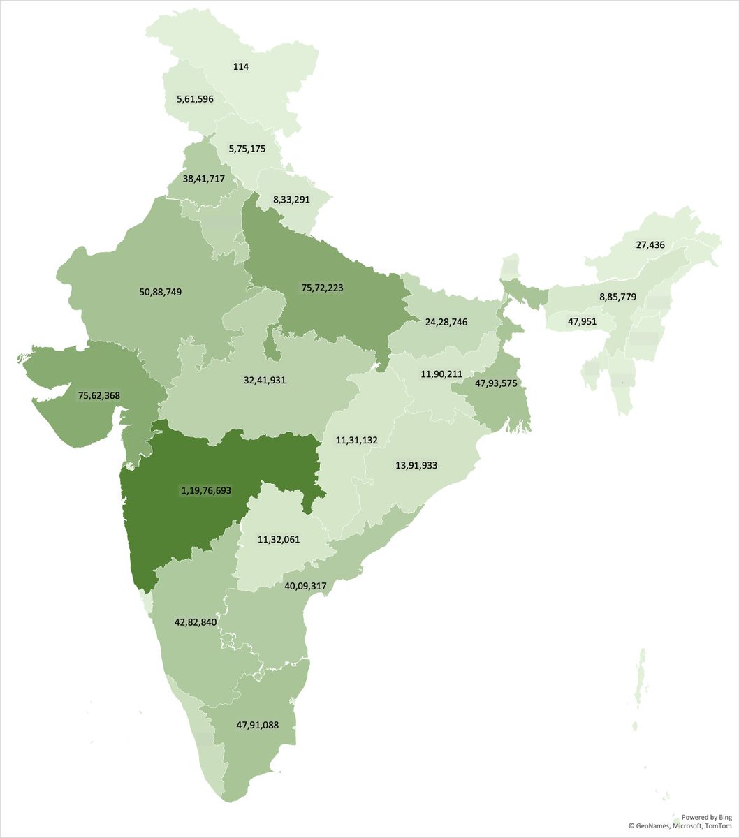 Top 5 states together make up 47% of individuals. Not many would have expected Rajasthan and West Bengal to be at #4 and #5 respectively.