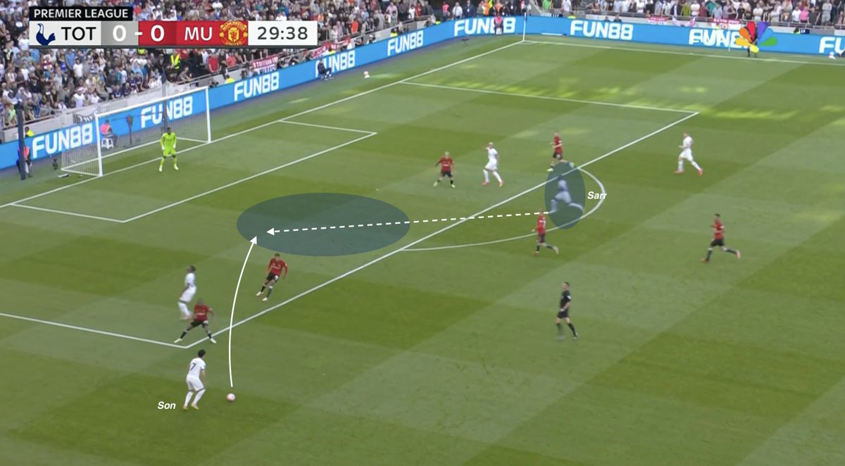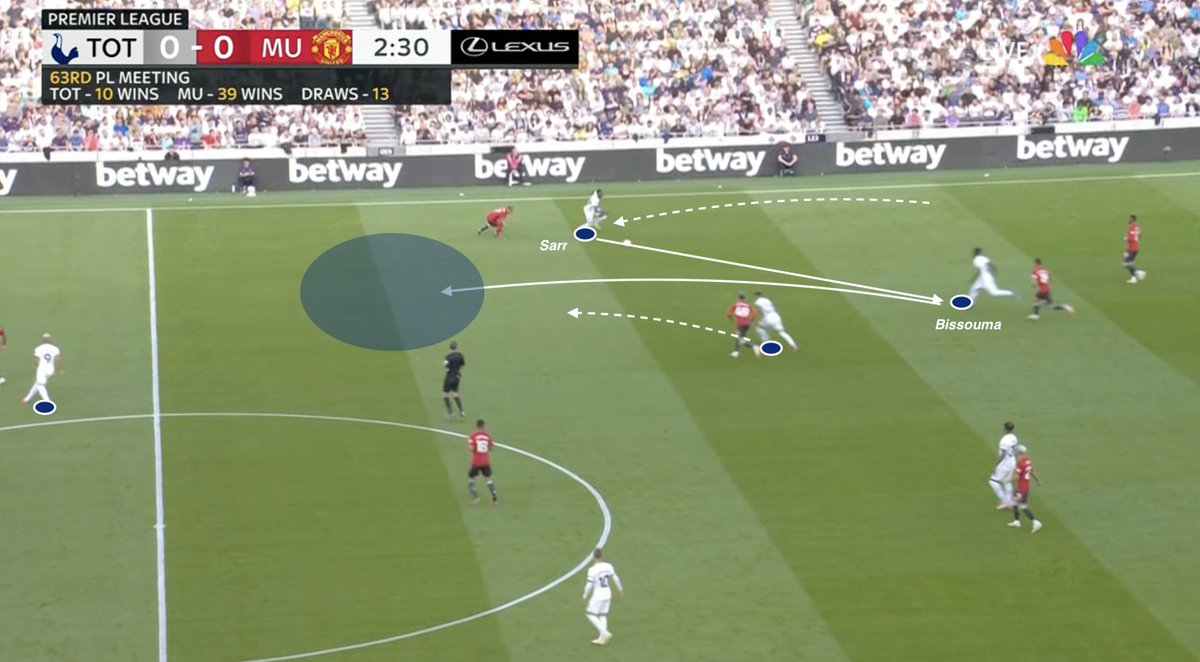 The discipline in repositioning from both Sarr and Bissouma allowed Spurs to have more control, in more defensive transitions situations. United could've had more chances to score if this duo didn't replace so quickly.