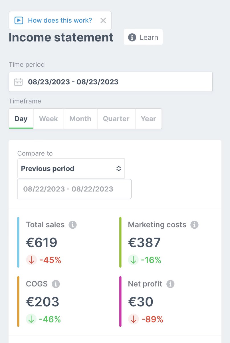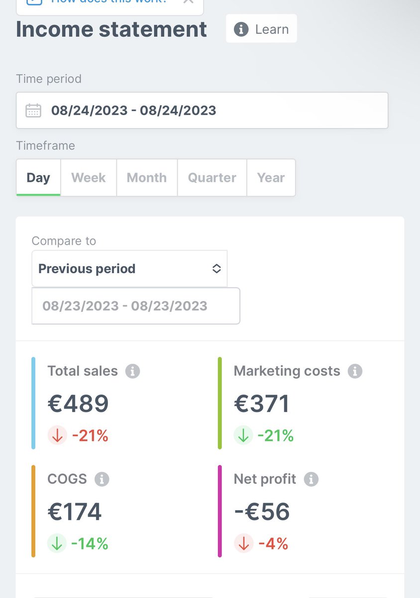 Aug 23 - not all sunshine and rainbows β’ scaled too hard + 3/4 products i tested today had good metrics but 0 sales