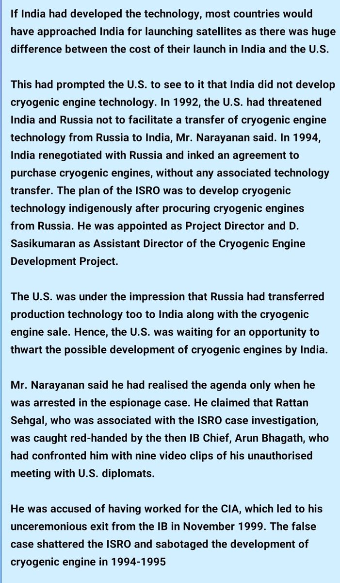 โ #Thread | ๐๐ฆ๐ฅ๐ข ๐๐๐ฝ๐ถ๐ผ๐ป๐ฎ๐ด๐ฒ ๐๐ฎ๐๐ฒ ๐ข๐ณ ๐ญ๐ต๐ต๐ฐ - False Implication of #ISRO Scientist Nambi Narayanan By Congress Delayed India's Cryogenic Tech Development