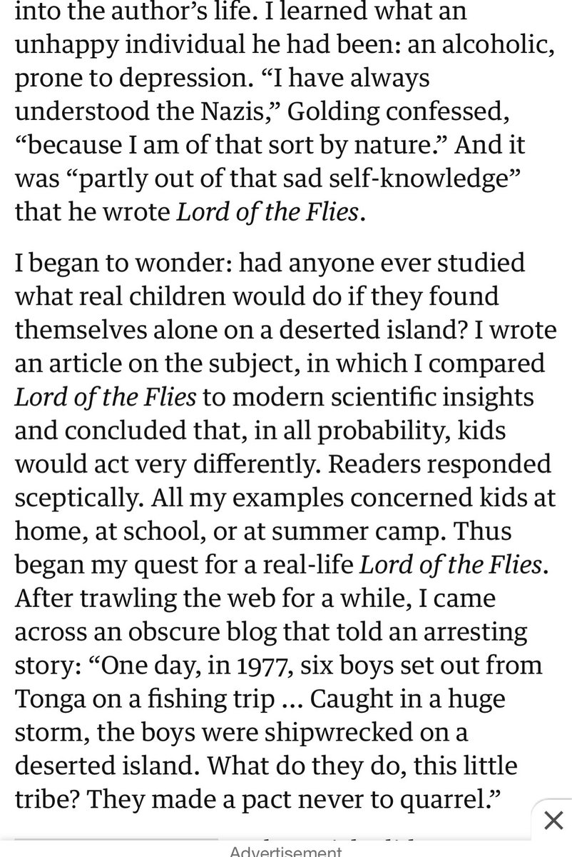 Here’s an article exploring what actually happened when young boys were shipwrecked. (The opposite of Lord of the Flies) by @rcbregman who wrote a book about all this called Humankind.