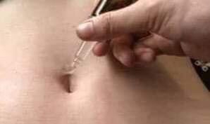 قبل النوم بالليل ضع 3 نقط من زيت الزيتون أو السمن الاصلي (الحيواني) أو زيت جوز الهند على السرة وانشرها أو امسحه حوالي بوصه ونصف حول السرة