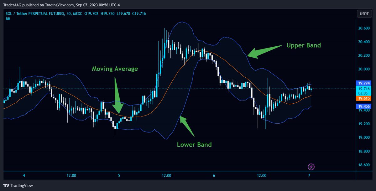 1. #Bollinger Bands: Use the default settings (20-period Simple Moving Average with two standard deviation bands).