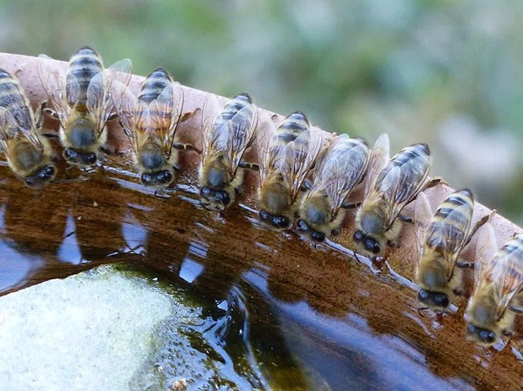 Just like all other creatures, bees need to have constant access to a safe and clean water source. Keep a shallow dish or bird bath that provides a safe space to land nearby.