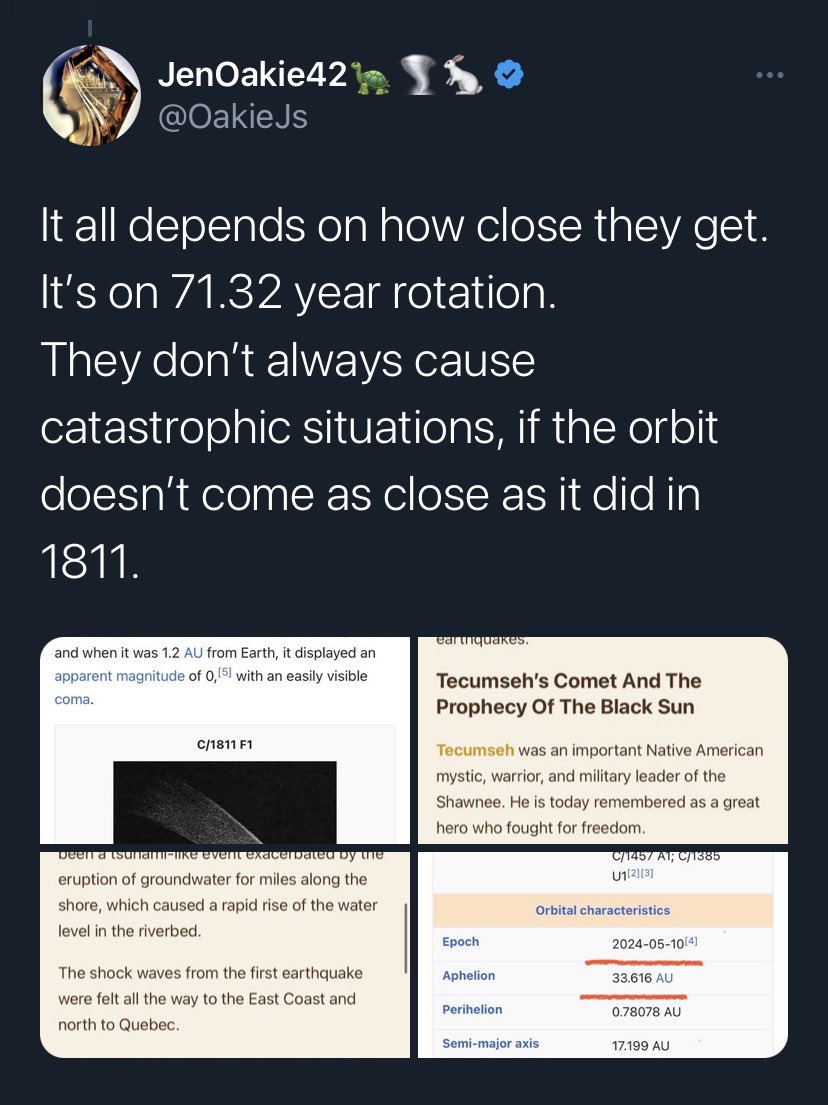 Both green comets. Both βonce in a lifetimeβ .... Both coincide with a major quake. Both relatively close, in terms of cometary tail influence.