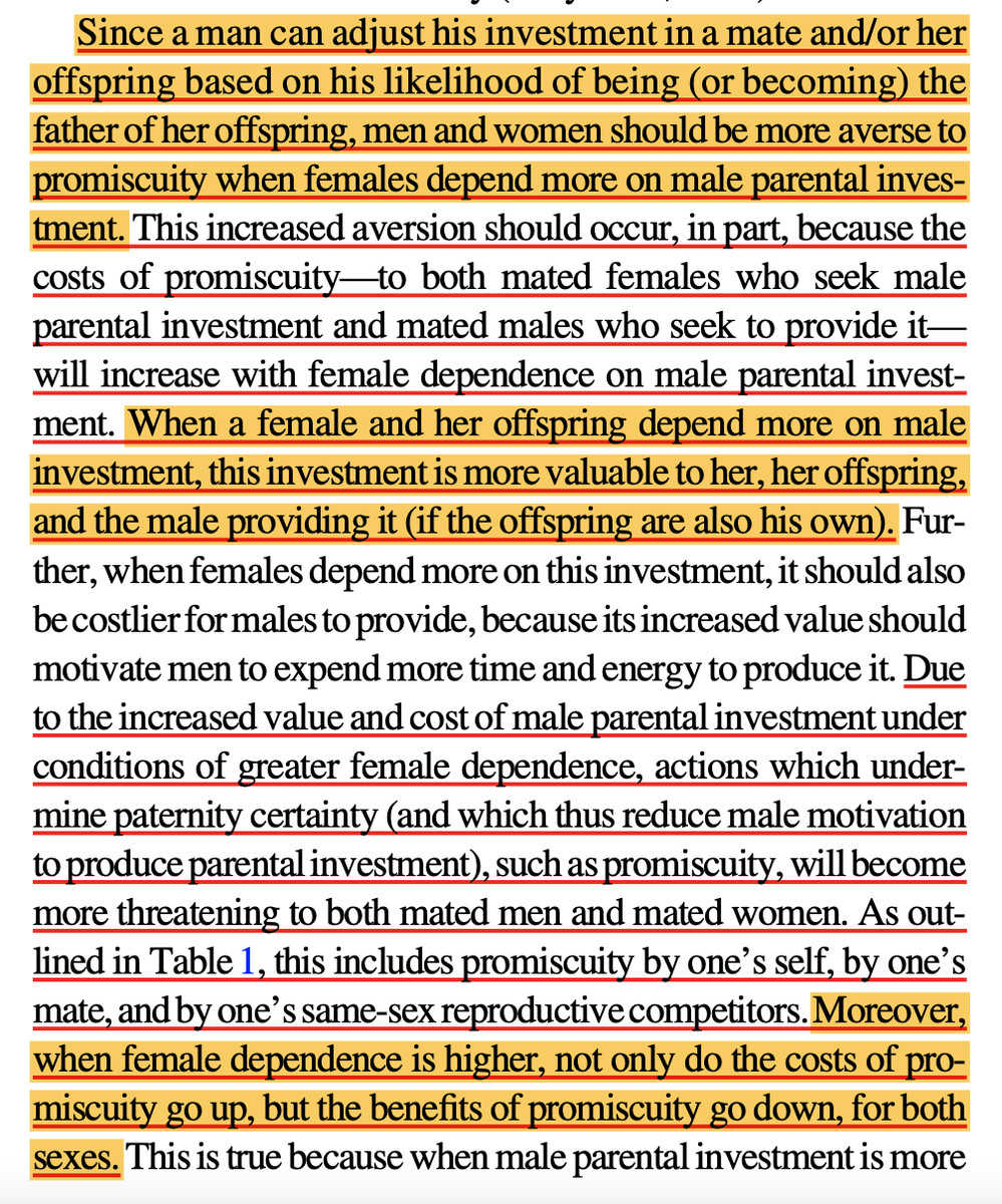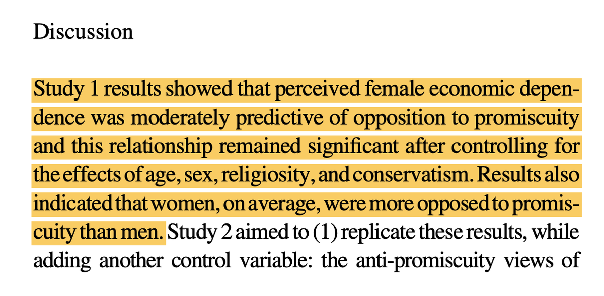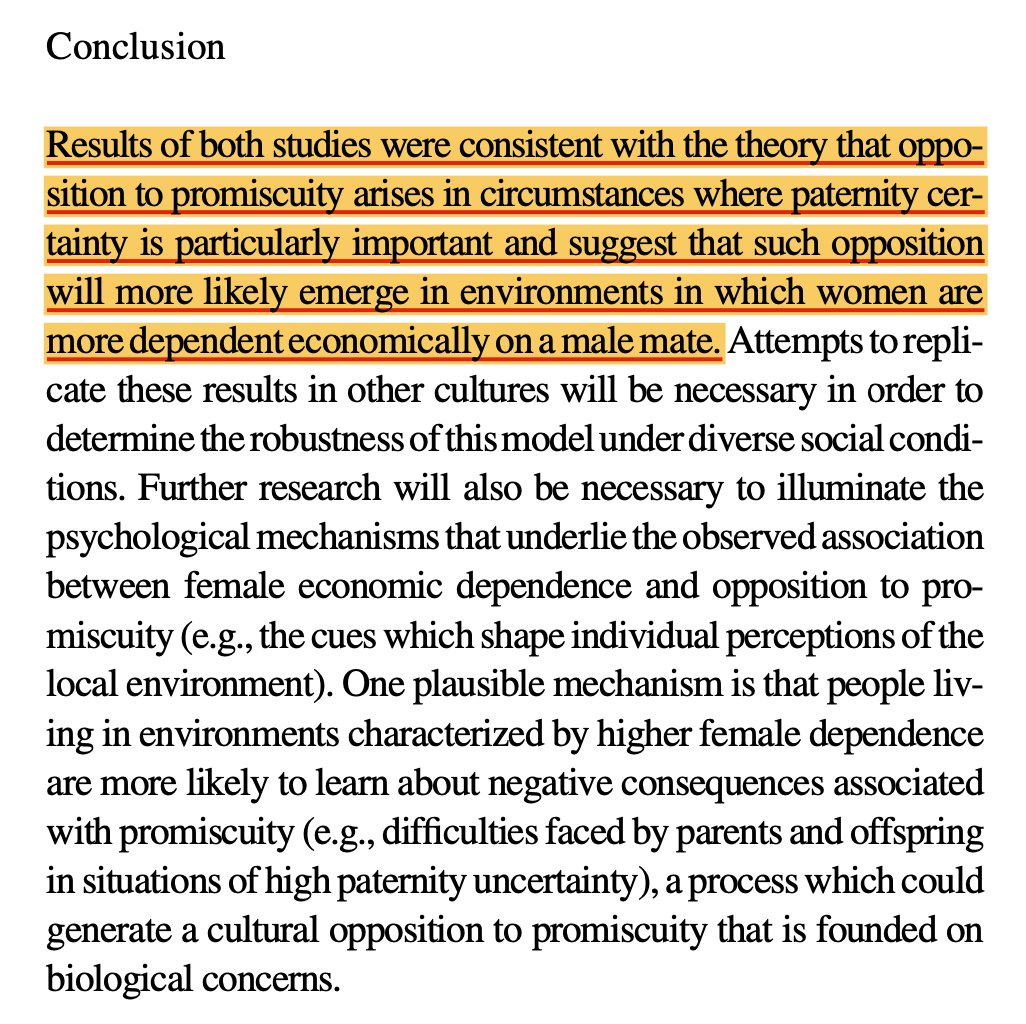 This also allows us to understand why traditionally promiscuity was a great taboo even if people were not particularly religious. Their aversion to promiscuity seems not to be primarily due to religion but rather due to female economic dependence.