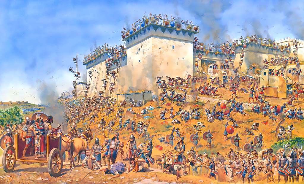 “I rained destruction upon them. I scattered their corpses far and wide, filled the face of the desolate plain with their widespreading armies. With weapons I made their blood to flow down the valleys of the land. The plain was too small to let their bodies fall, the wide countryside was used up in burying them. With their bodies I spanned the Arantu as with a bridge. In that battle I took from them their chariots, their cavalry, their horses, broken to the yoke.”