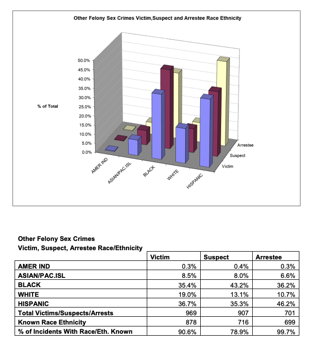 In sum, it's sort of nuts NYPD does this. Cops are very right-wing, and this just shows how the ideology of government workers decides what data is collected. If sociologists were in charge I'm sure they would release the victim numbers but not suspects or arrestees.