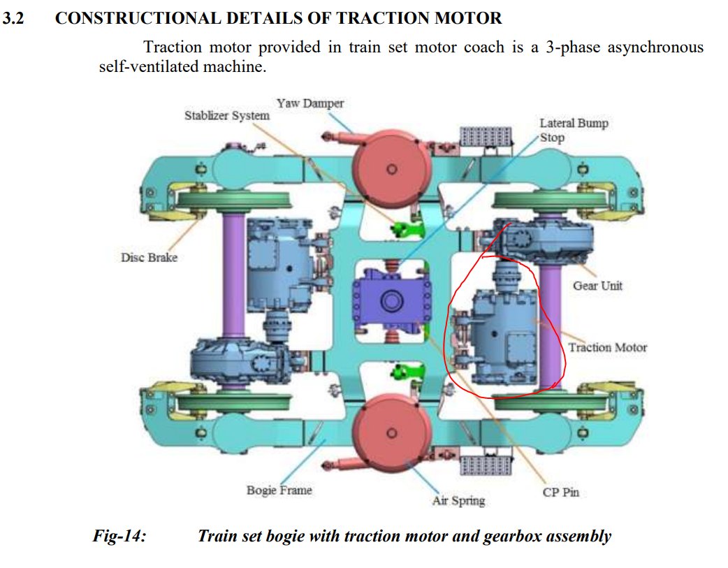 Each bogie of the locomotives is fitted with three nose suspended traction motors driving the axle through solid pinions and gears. 1.1. 3. The current for the traction motors is obtained from traction alternator / generator.
