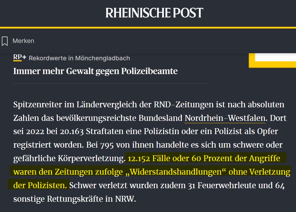 Auch peinlich: Das besondere an Widerstandshandlungen (§113 StGB) ist laut @RND_de (Quelle der "Recherchen"), dass Beamte nicht verletzt wurden 🤦♂️