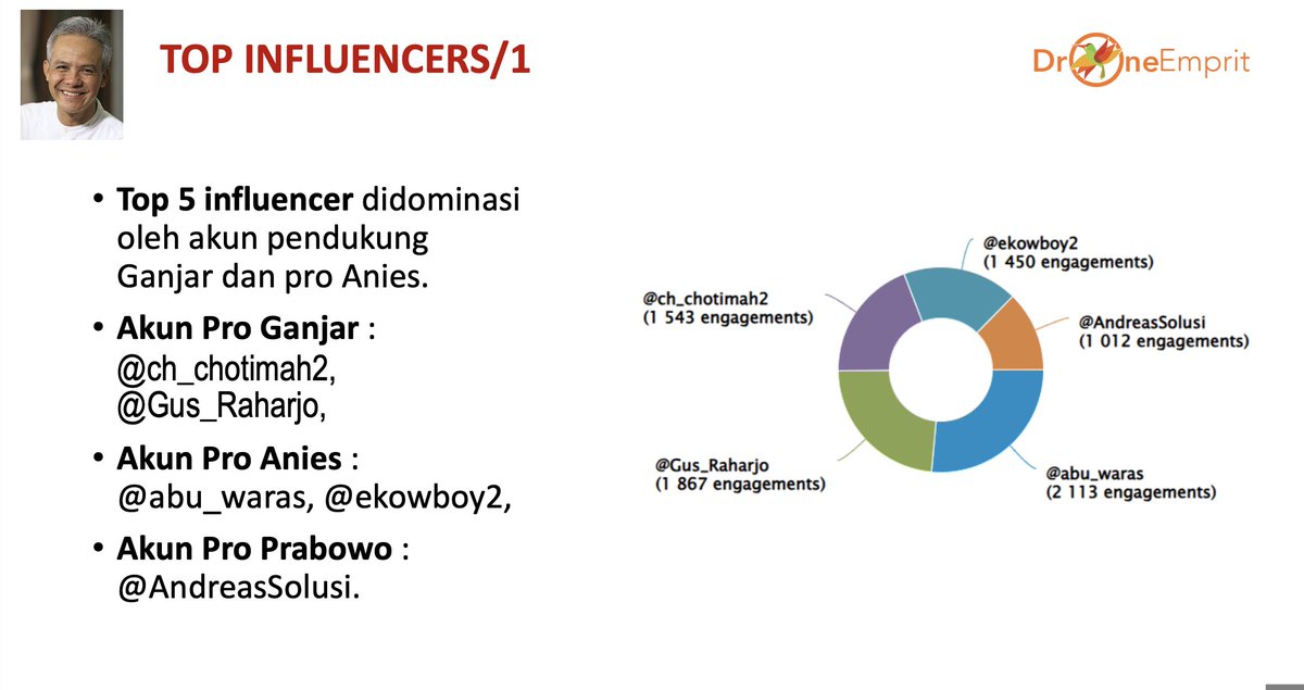 - Top 5 influencer didominasi oleh akun pendukung Ganjar dan pro Anies.