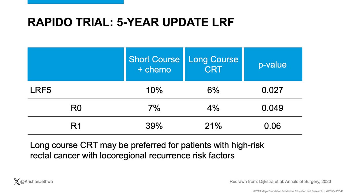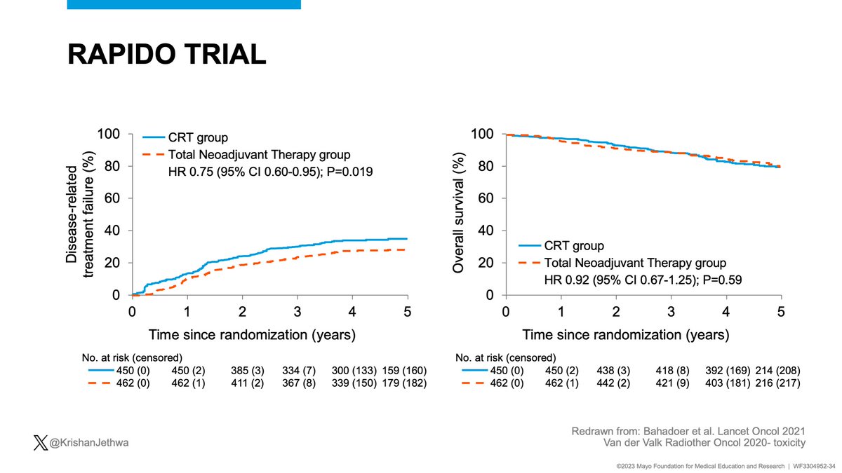 🔥RAPIDO- high risk: ⬆️ pelvic recurrence (10% vs. 6%) with SC-TNT vs. LC-CRT.