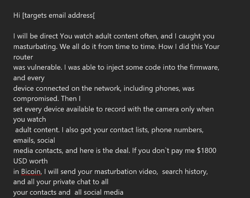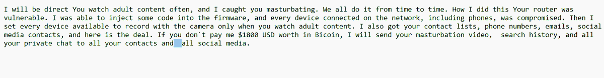 in Bicoin, I will send your masturbation video, search history,