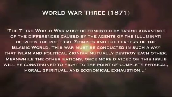 "We have to orchestrate three world wars which will create NWO layer by layer and we will achieve our aim after third world war"