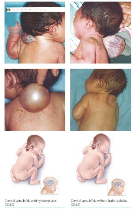 The first slide shows one of the spectrum called Spina bifida where the Spinal cord is protruding out of the body