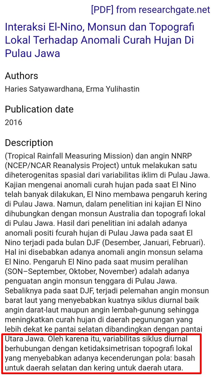 Riset kami tentang mengapa hujan di selatan Jawa saat El Nino: scholar.google.com