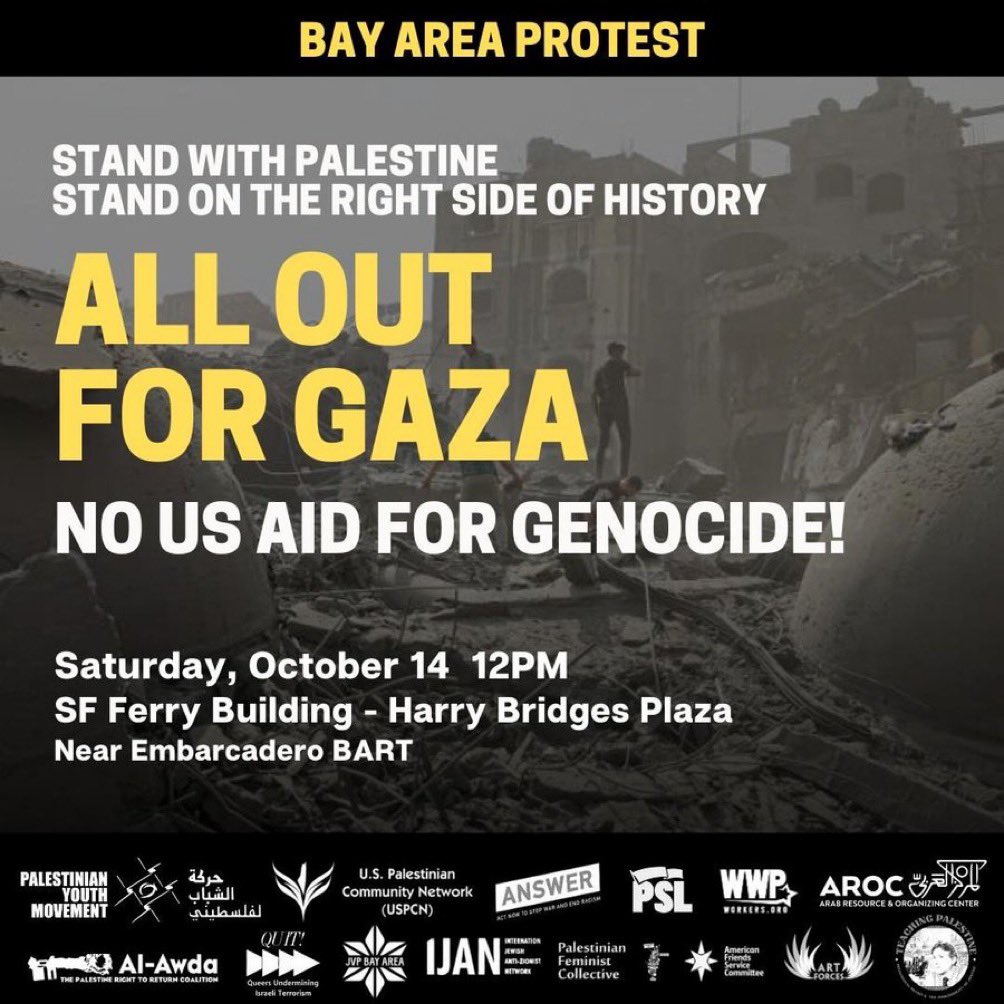 @SpeakerPelosi @palyouthmvmt And TOMORROW, come out for Gaza at the Ferry Building at 12PM