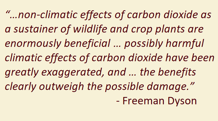 "Non-climatic effects of carbon dioxide as a sustainer of wildlife and crop plants are enormously beneficial, that the possibly harmful climatic effects of carbon dioxide have been greatly exaggerated, and that the benefits clearly outweigh the possible damage."