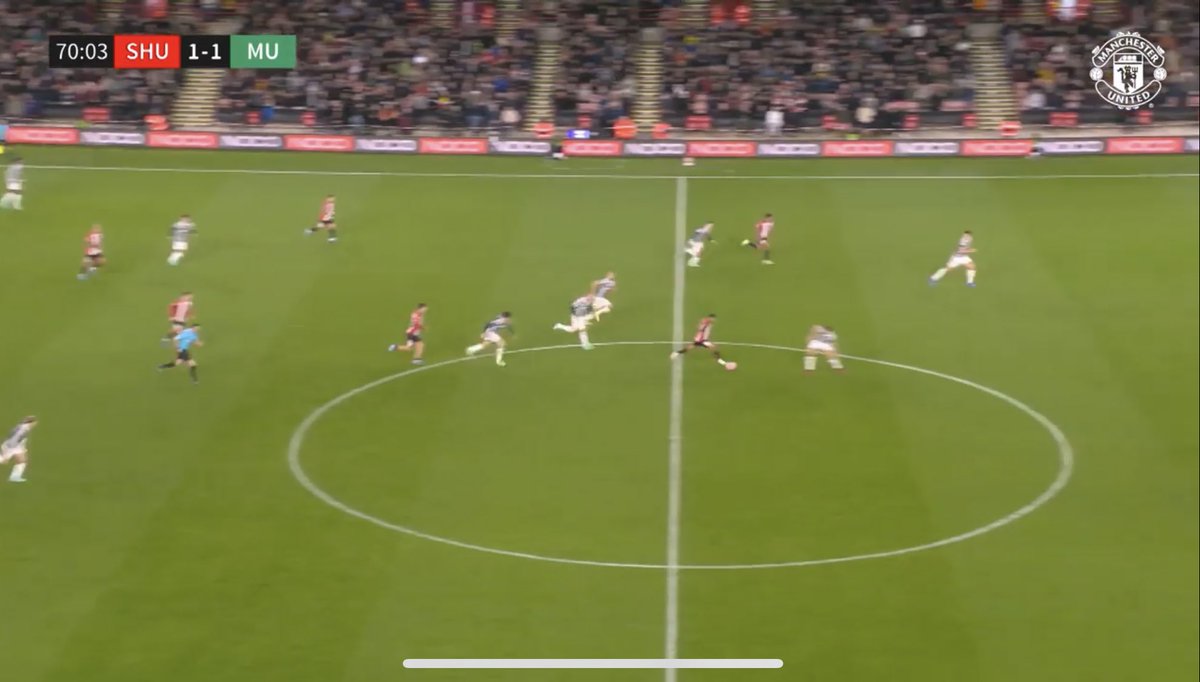 The 3-1 wasn’t ideal due to the lack of deep progression plus the SU screening of Amrabat. Forced United to open up the passing lanes to the wingers where pressing traps were created or the winger lost their duel