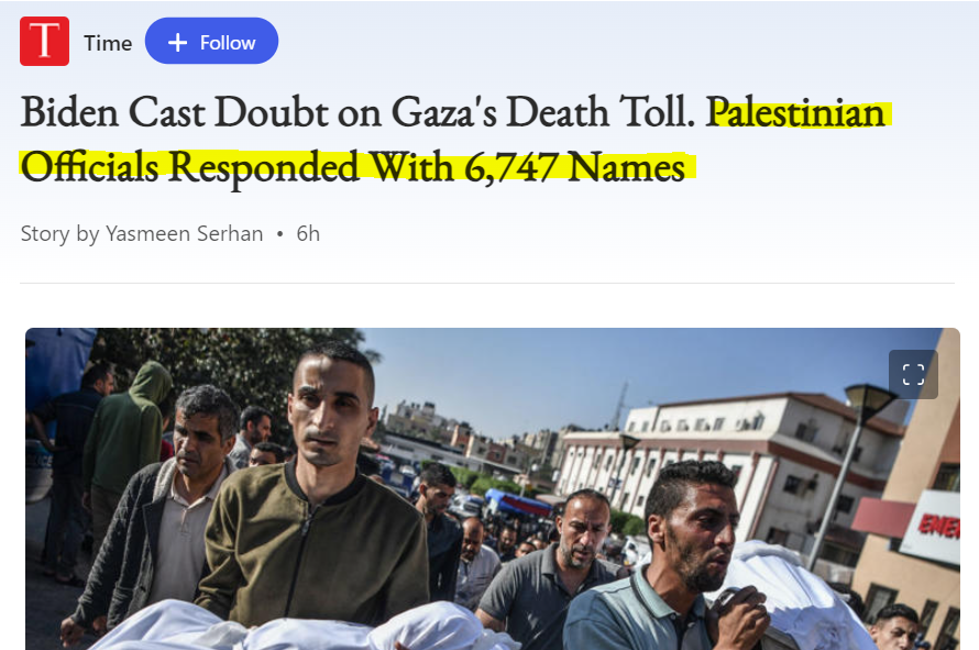 Gaza’s health ministry gave the Biden admin a 212-page document w/the name, age, sex & identification number of 6,747 people that have been killed in Gaza since Israel began bombing it on Oct 7. The list doesn't include 281 dead who haven't been identified.