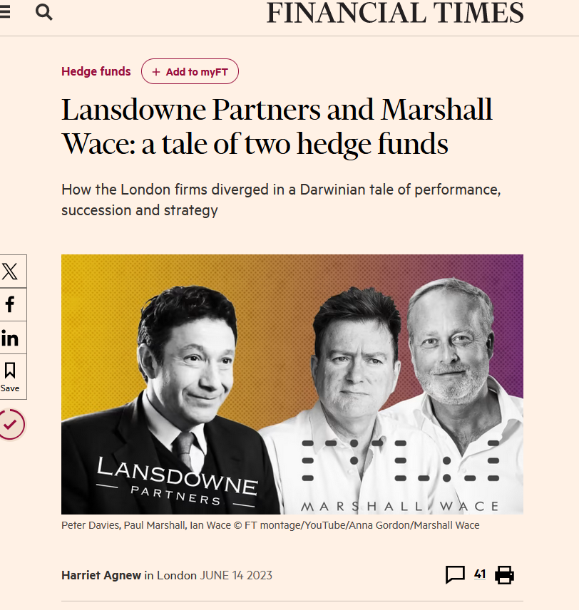 "Born a year apart a quarter of a century ago, Lansdowne Partners and Marshall Wace struck out on the same path, using fundamental analysis to buy and sell European equities.