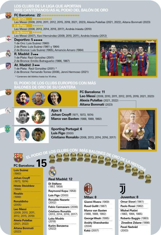 Deportivo, the second Spanish club with players from its youth academy gracing the Ballon d'Or podium, boasts five accomplished talents.