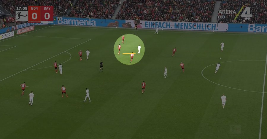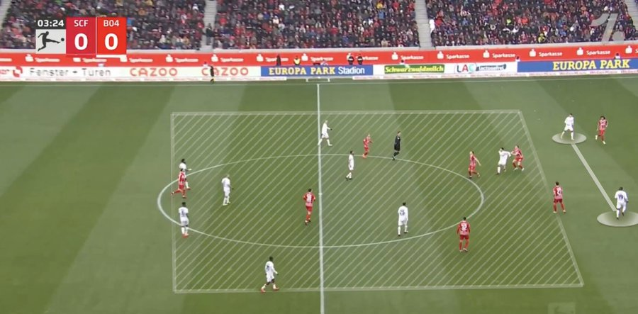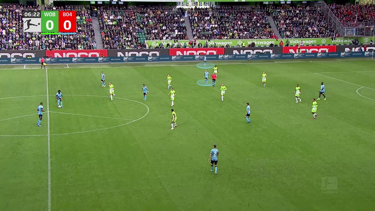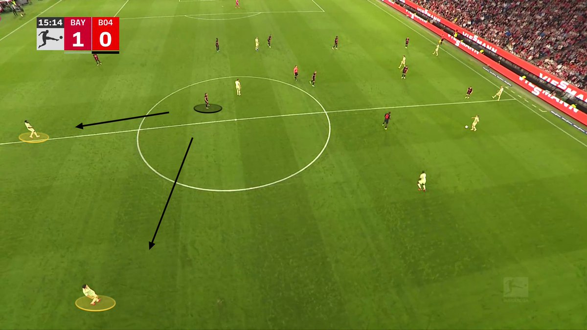 Then, on the break down of play, Leverkusen may lack players high in transition as a result of the wide players having to track back.