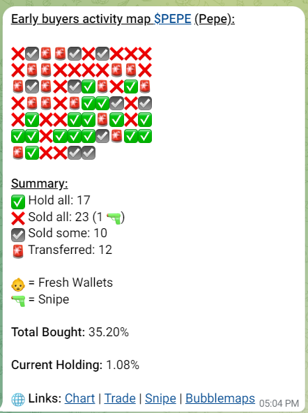 The Early Buyer feature shows you a early buyers activity map, a Summary, Total Bought, and Current Holding.